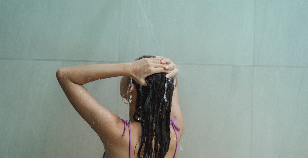 - After shampooing and conditioning, pour the solution over your hair evenly, working it into your scalp.