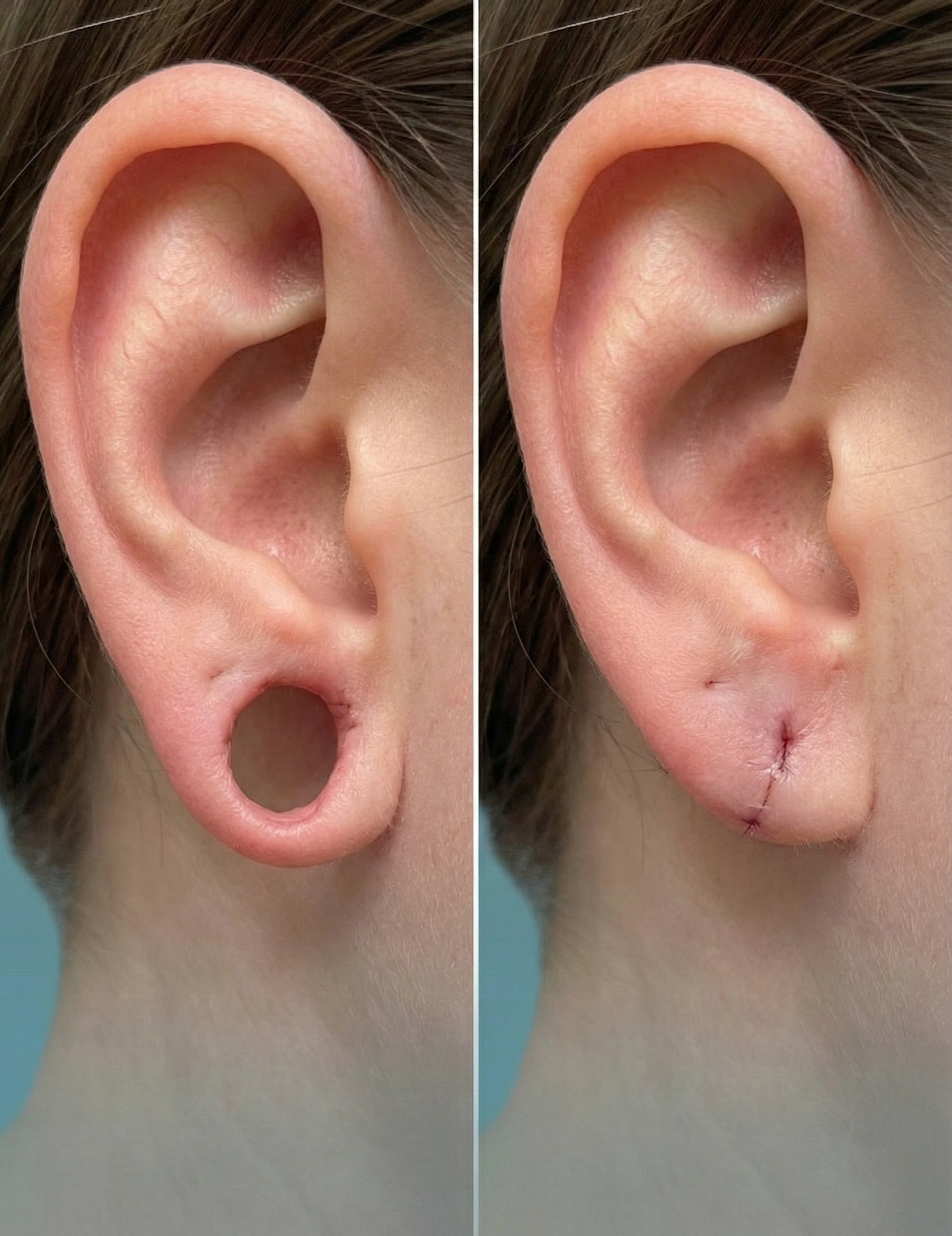 For earlobes that are more noticeably stretched or uneven, reconstruction can recreate a fuller, balanced appearance while preserving tissue integrity.